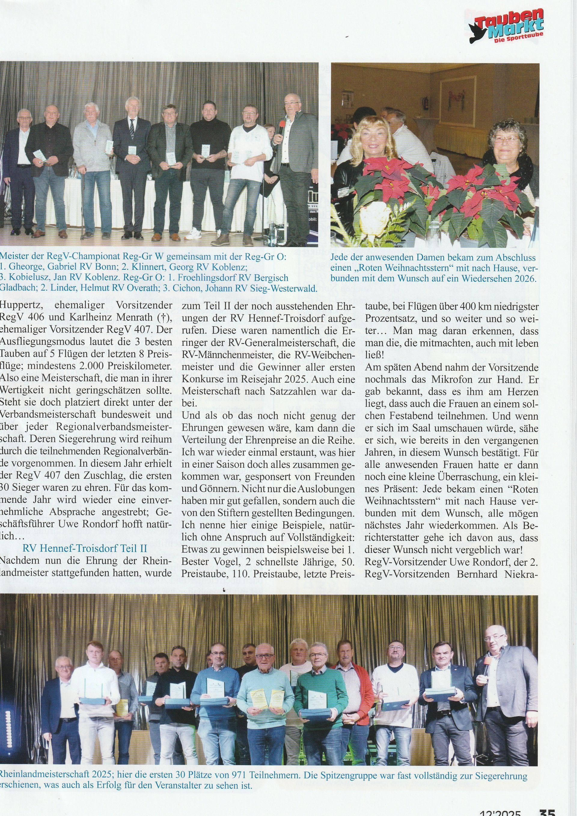 Tauben Markt/ Die Sporttaube-Ausgabe Dezember 2025