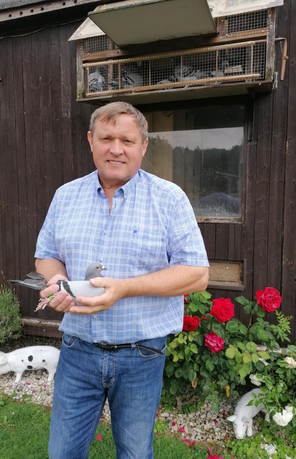 Horst Busse mit der Siegertaube und seinem Schlagpartner Ruslan Glogus.